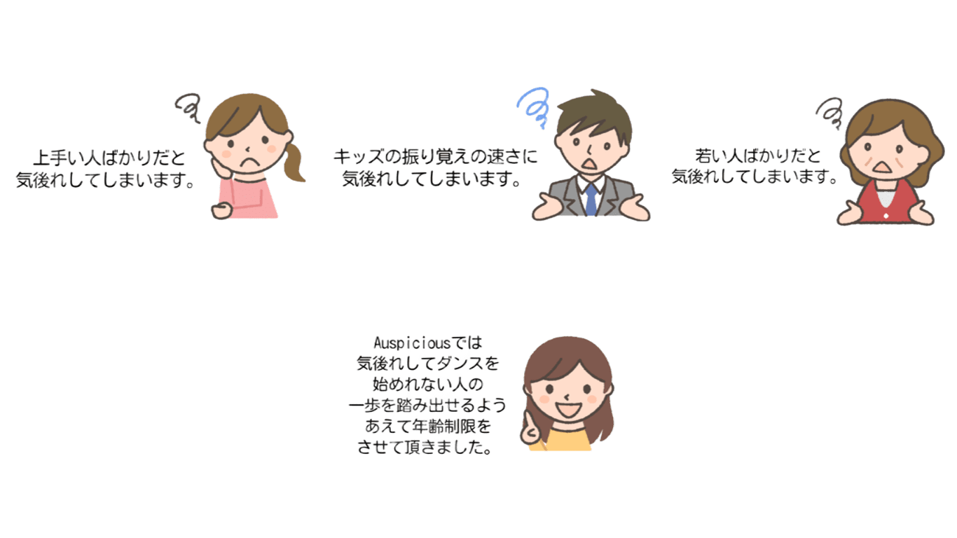 という想いを持つ30歳以上の未経験者さん・初心者さんを応援するダンスコミュニティ Auspicious(オスピ)の公式サイトです。